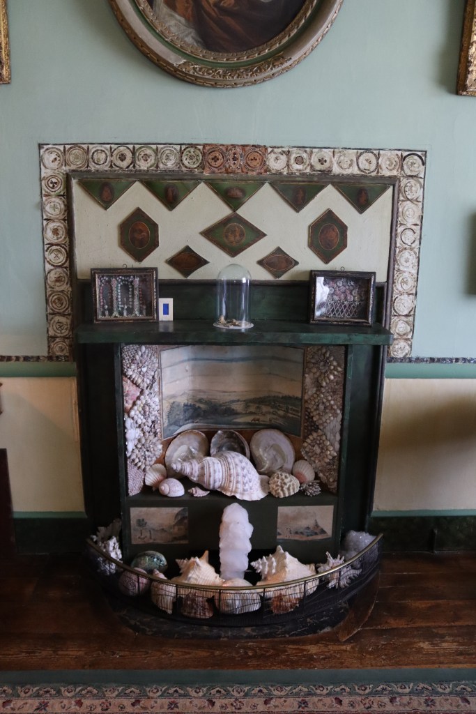 What amazed me were the collections of shells. Jane, Mary, and Elizabeth had collected many on their travels, and they were on show in one of the drawing rooms, in a room off the bedroom, and the rest of the shells designed into intricate patterns set into the top of the building to create the shell gallery.