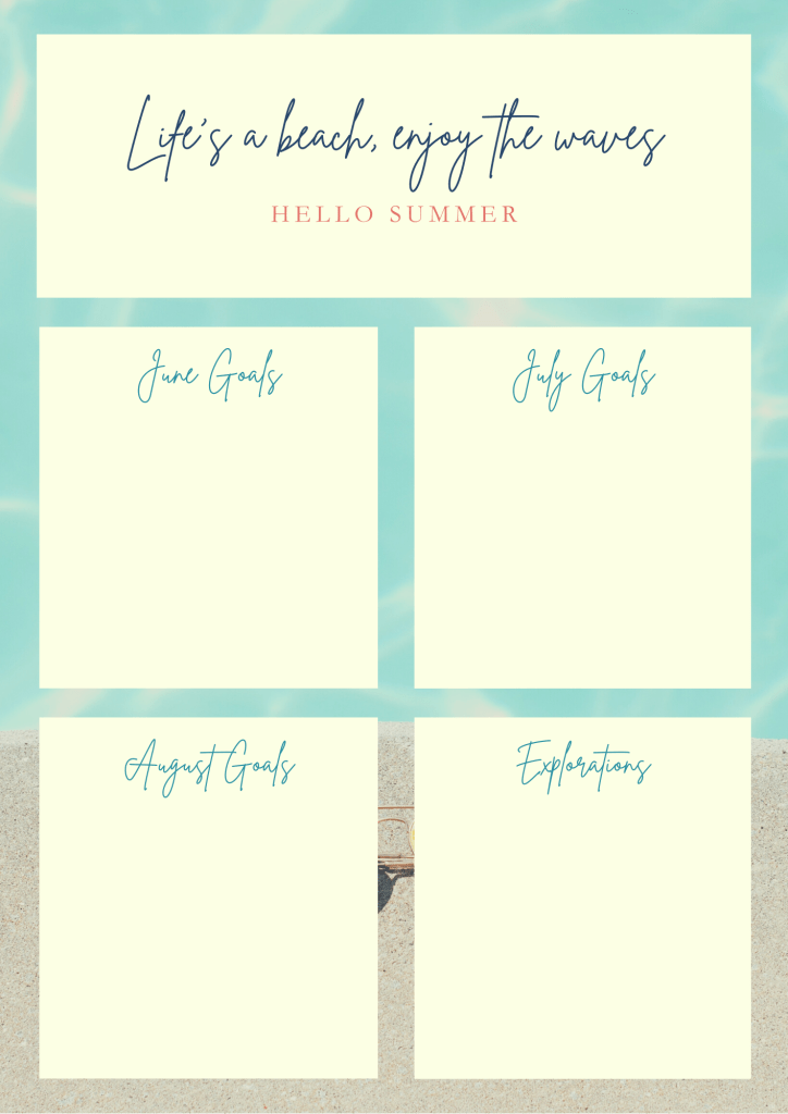 At the beginning of Spring (late February/early March) I created a Spring Goals printable for people to write in their monthly goals and seasonal explorations. I feel I should have created one for Summer a bit earlier, but as it’s only a week or so from the Summer Solstice, perhaps I’m not too late.