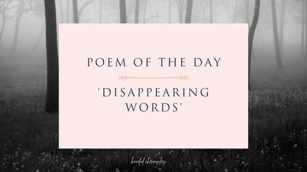So the question is, do we disappear? I’m not convinced we do entirely, but still, the question tipped over my thoughts and this poem was born. I guess it’s a little about disappearing, and wondering if you don’t disappear – if perhaps when or if you become spirit or energy or whatever, what can you do to communicate? How can you tell anyone that you do still exist, even if it’s not on the same level of existence as those still living? Does that beg the question then as to what living is? Maybe there’s only constant change, change of circumstances, change of situation, change of being.