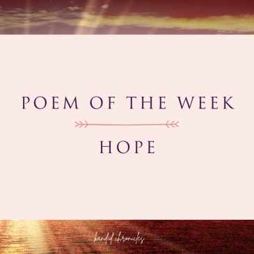 Linking in with my theme for this month, this poem is all about hope. I was sorta inspired by my blog post earlier this week, and the words just came to me after thinking of the quote “Hope is the thing with feathers”. … More Poem of the Week: Hope